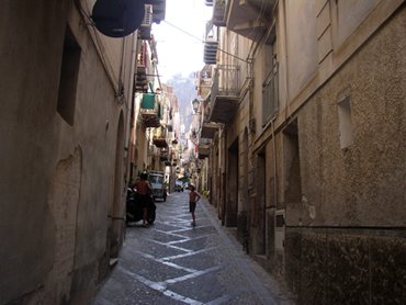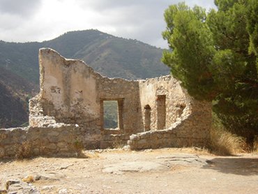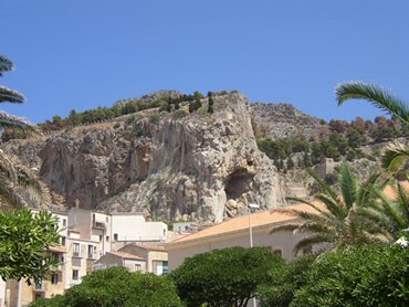 domineert de stad. De 278 meter hoge rots hebben we beklommen. Bovenop staat de Dianatempel uit de 9de eeuw voor Christus. A high rock, la Rocca, dominates the city. We climbed this 278 meter high rock. On top is the temple of Diana from the 9th century BC. |